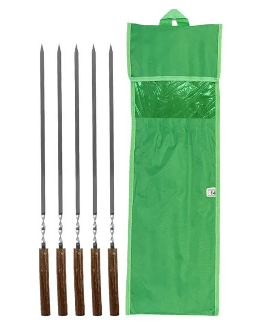 Набор плоских шампуров Palisad Camping с цельной деревянной рукояткой 650 мм, в чехле, 6 шт.