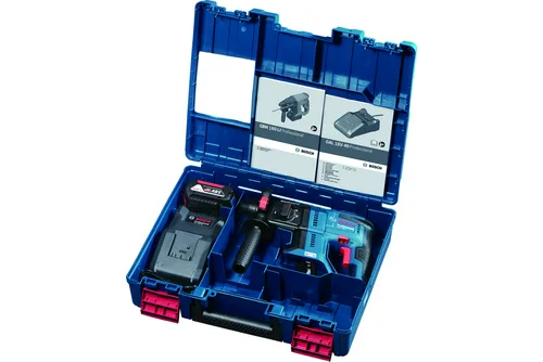 Аккумуляторный бесщеточный перфоратор; 1 аккумулятор GBA 18V 4.0Ah 1 600 A00 163; Быстрозарядное устройство GAL 18V-40 Professional1 600 A01 9RJ; Дополнительная рукоятка 1 602 025 08X; Салфетка (№ запасной части 1 619 200 413); Ограничитель глубины 1 613 001 003; Чемодан