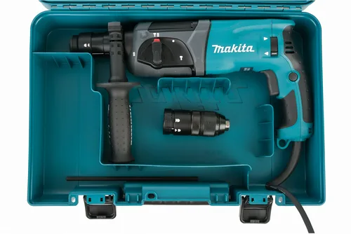Перфоратор Makita HR 2470 FT - инструмент для профессионалов. Контроль за состоянием угольных щеток и числом оборотов производит встроенная электроника. У инструмента несколько режимов работы: сверление, сверление с ударом (для таких материалов, как камень, армированный бетон) и долбление, с помощью которого можно делать штробы и проемы, убирать старую плитку. Низкий уровень вибрации и шума делает работу более комфортной. Перфоратор имеет дополнительный быстрозажимной патрон.