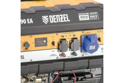 Бензиновый генератор Denzel PS 90 EA, 9,0 кВт, 230В, 25л 946934 создан для самых серьезных нагрузок. Может выдавать до 8 кВт номинальной мощности благодаря двигателю увеличенного объема denzel long life. Например, одновременно можно подключить в дачном доме: 5 энергосберегающих ламп, холодильник, чайник электрический, варочная панель, телевизор, насосная станция. На строительной площадке: дрель, перфоратор, УШМ, пила циркулярная, 5 энергосберегающих ламп, бетоносмеситель. Блок автоматического запуска генератора позволяет один раз подключить генератор и забыть о нем, лишь периодически доливая бензин и масло. До 7 часов постоянной работы без дозаправки.