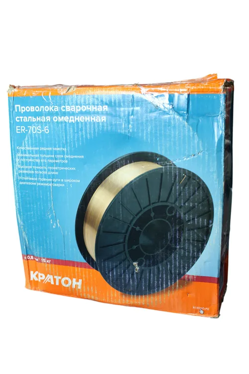 1. Проволока сварочная стальная омедненная Кратон Ø0,8 мм, 15 кг (СВ-08Г2С, ЕR70S-6) - 1 шт.