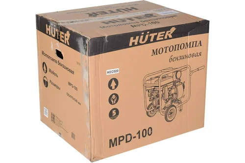 Мотопомпа Huter MPD-100 имеет колеса и удобные ручки для транспортировки. С их помощью можно без усилий перемещать агрегат по любой поверхности. Прочная металлическая рама обеспечивает устойчивость и защищает от механических повреждений. Основные элементы устройства (воздушный фильтр, топливный кран, заливная горловина и т.д.) защищены, но находятся в быстром доступе для обслуживания.
